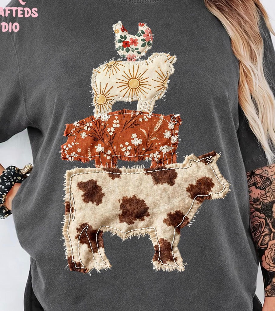 Patchwork Cow Pig Goat Chicken Dtf Transfer