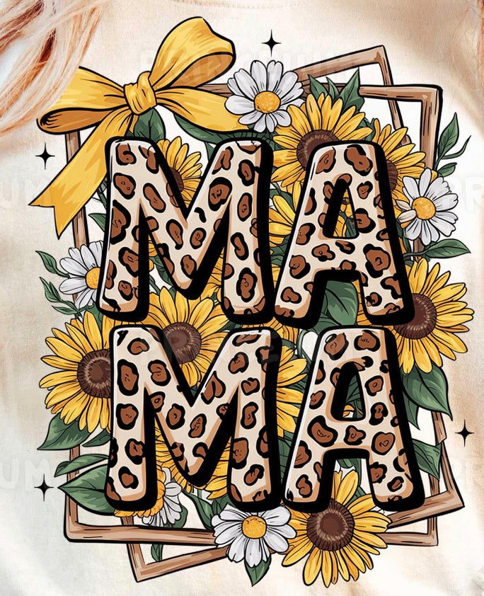 Mama leopard print and Sunflowers dtf transfer