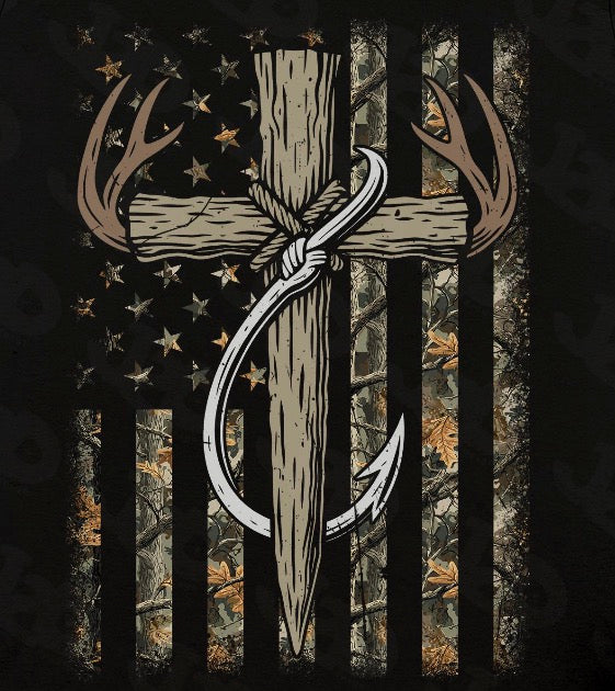 Camo Flag/Cross/hook/antlers DTF Transfer