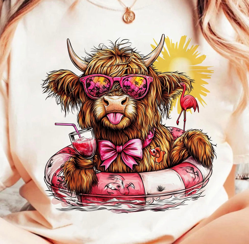 Highland cow summer floating dtf transfer