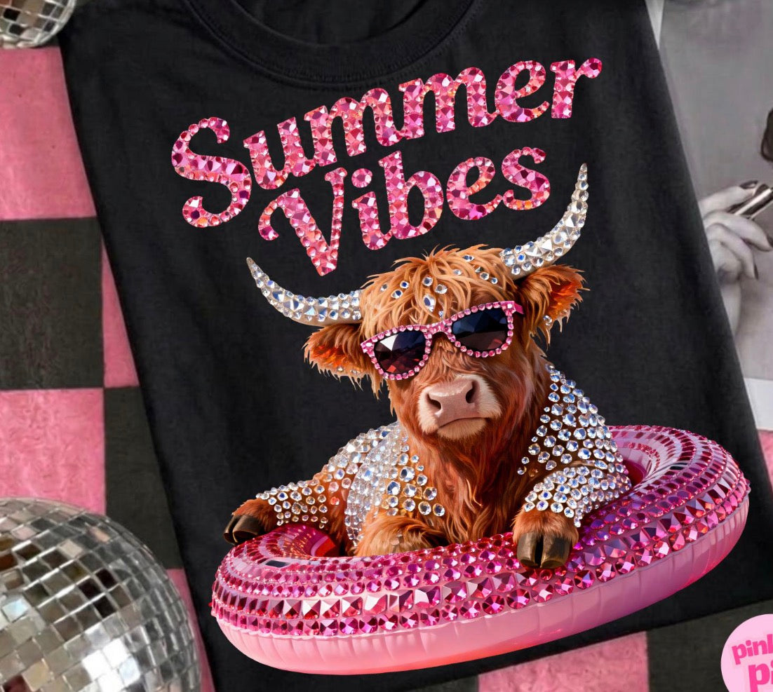 Summer Vibes Sparkly highland cow dtf transfer