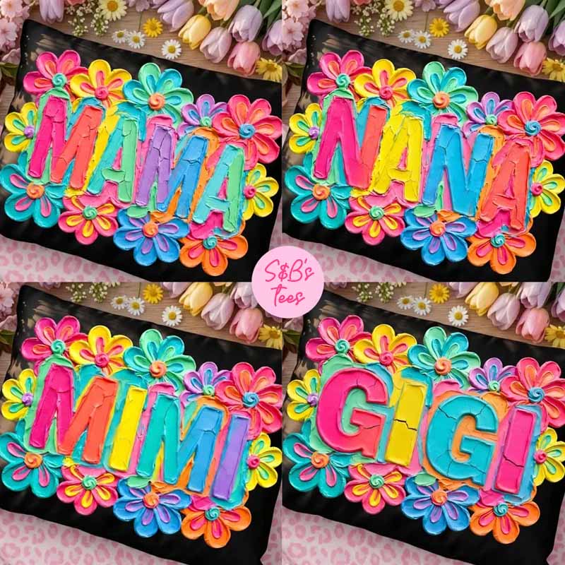 Paint Brush Floral Mother's Day Title DTF Transfers