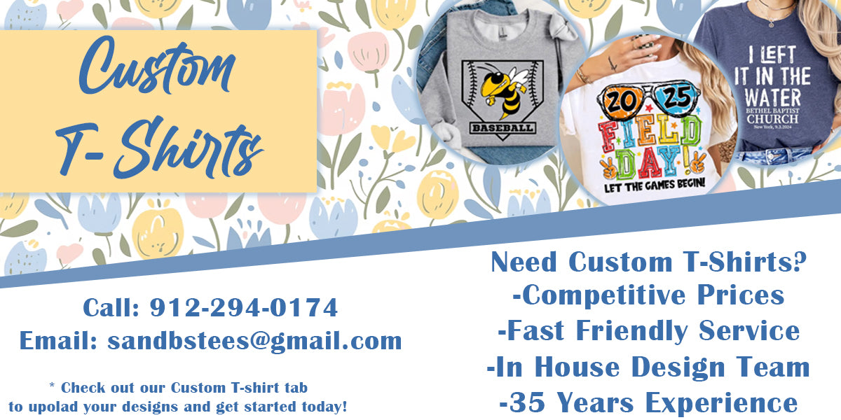 Contact Info: 912-294-0174 Email: sandbstees@gmail.com