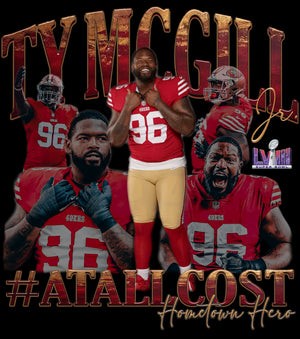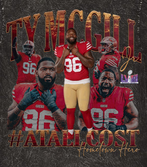 In honor of our very own local hero TY Mcgill Jr. We teamed up with his parents to make an awesome collectible shirt to celebrate his team making it to the Superbowl.