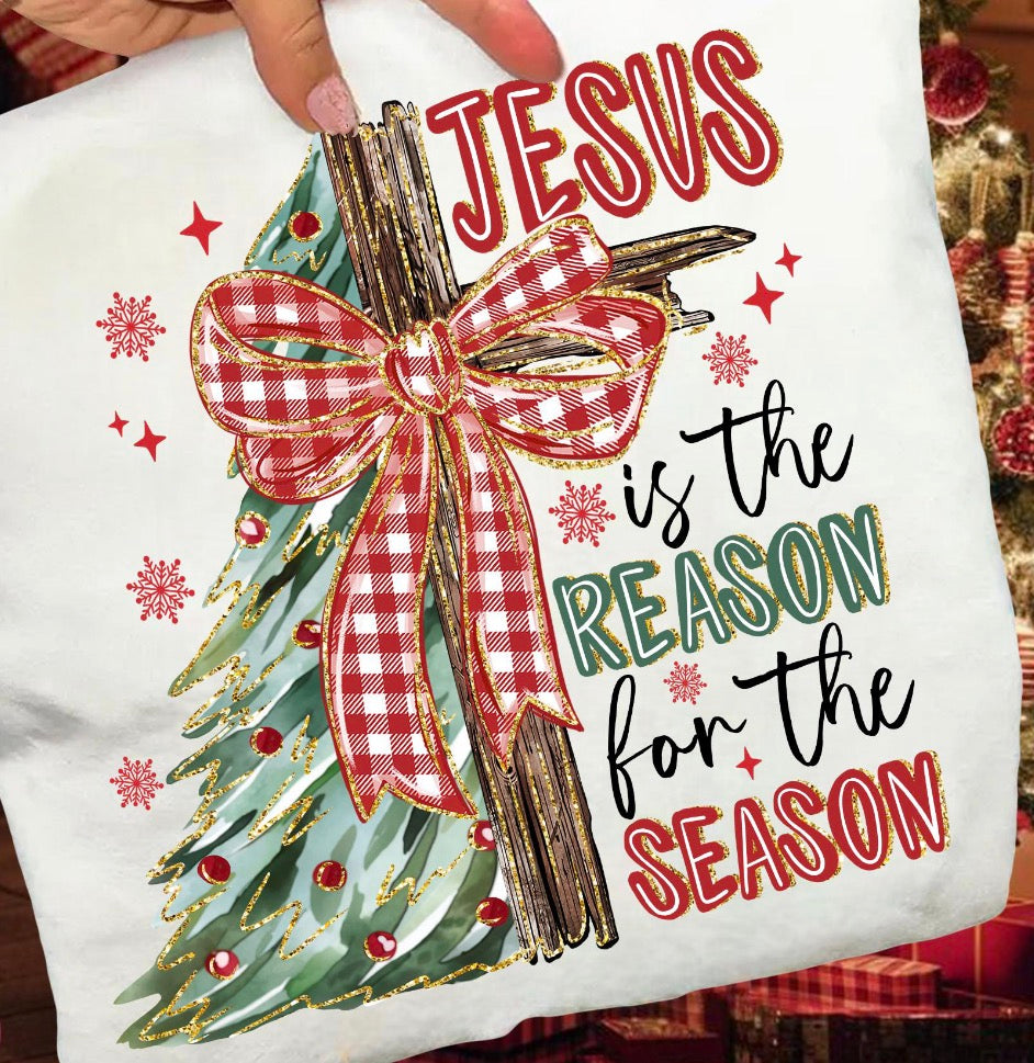 Jesus is the Reason Christmas Cross DTF transfer
