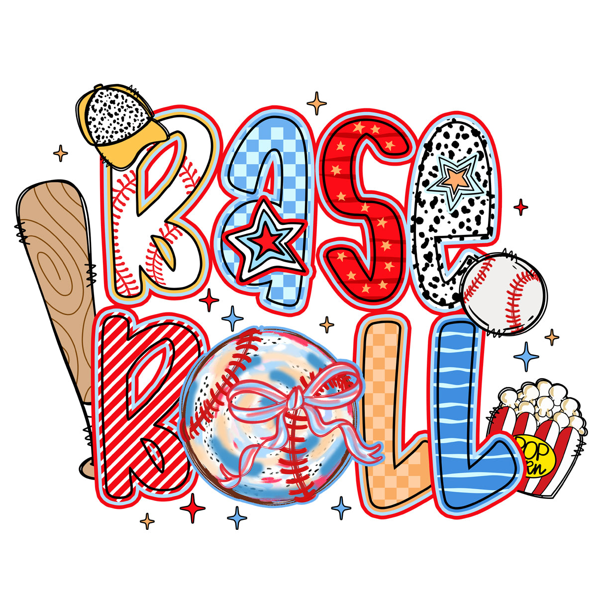 Cute Watercolor Doodle Baseball DTF Transfer