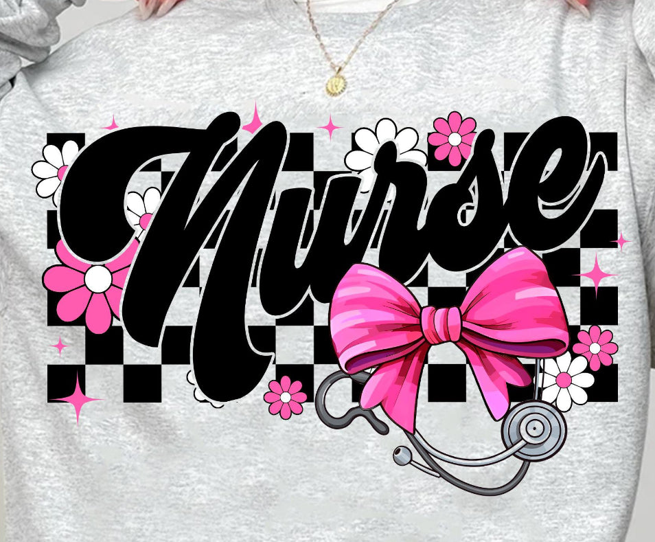 Nurse Pink Bow Retro T-shirt