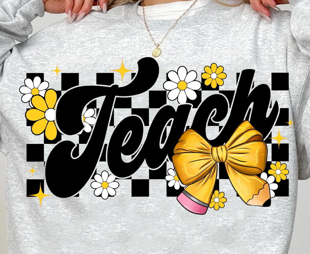 Teach Yellow Bow Retro T-shirt
