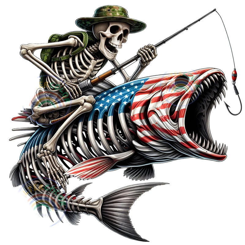 Fishing Skeleton American Flag and Camo DTF Transfer
