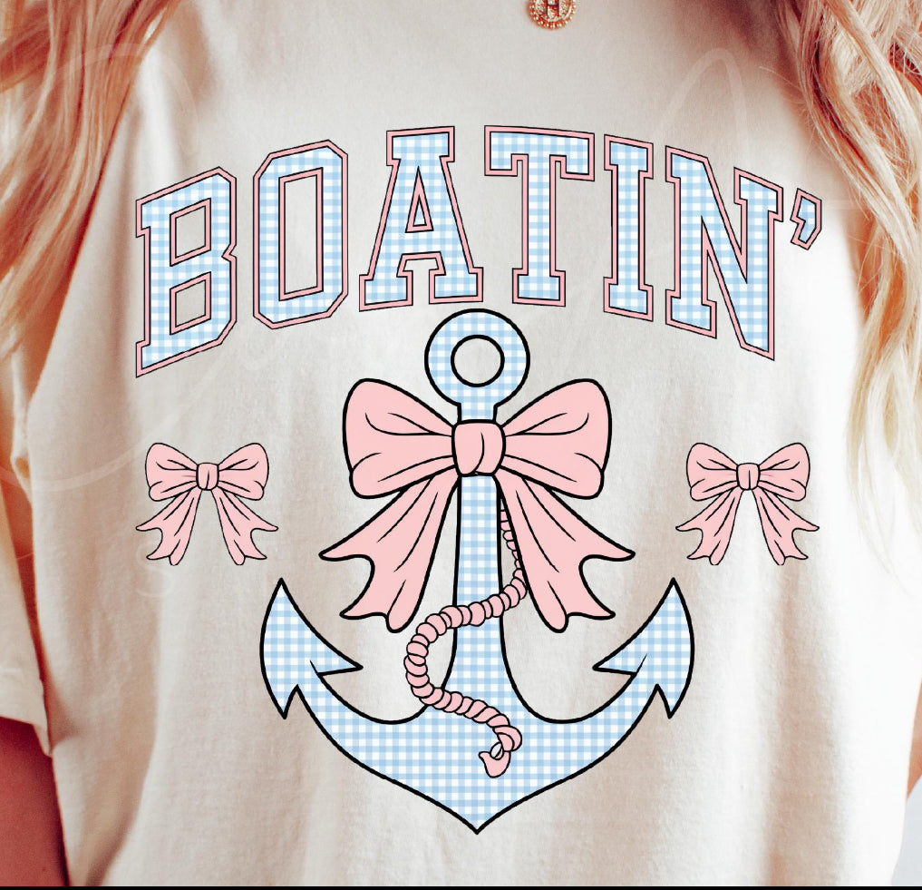 Boatin’ Gingham Anchor with Croquette Bow dtf transfer