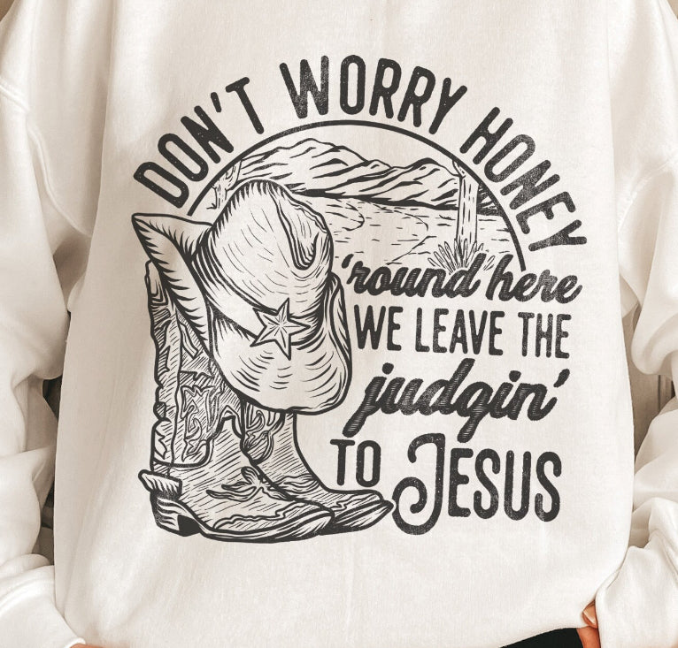 Don’t worry honey ‘round here we leave the judgin’ to Jesus dtf transfer