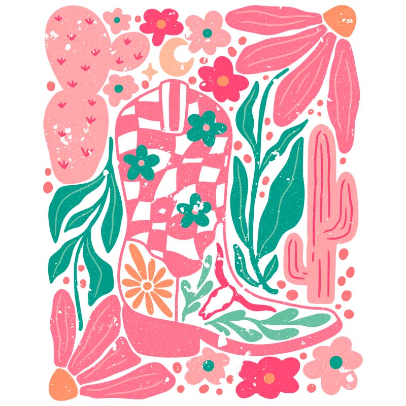 BoHo Cowgirl Boot and Flowers DTF Transfer
