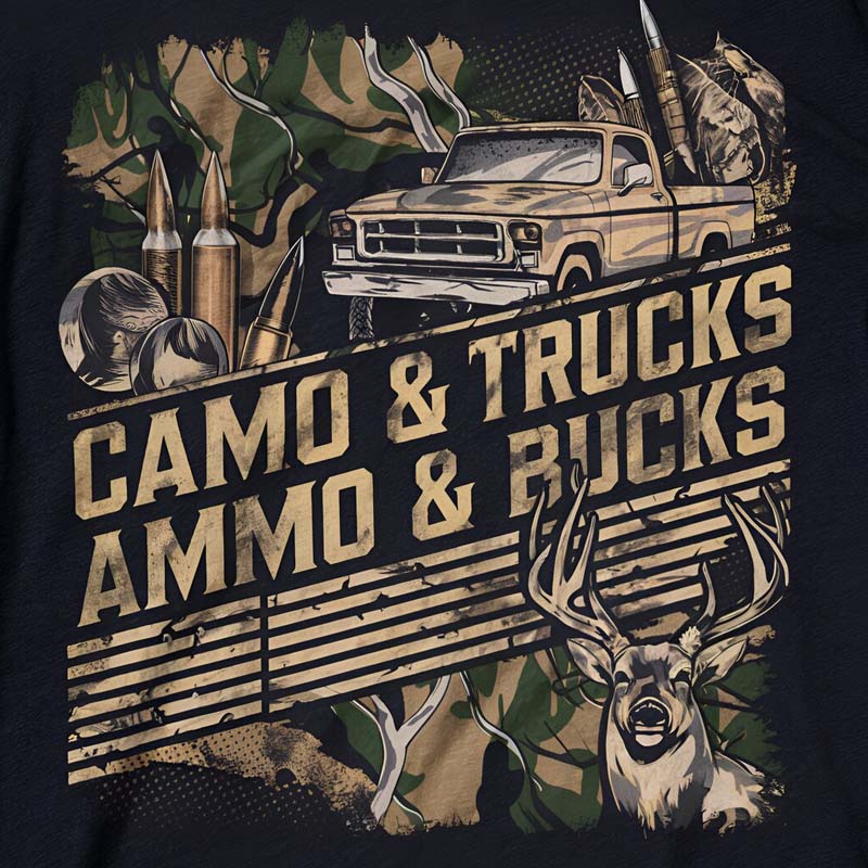 Camo & Trucks Ammo & Bucks DTF Transfer