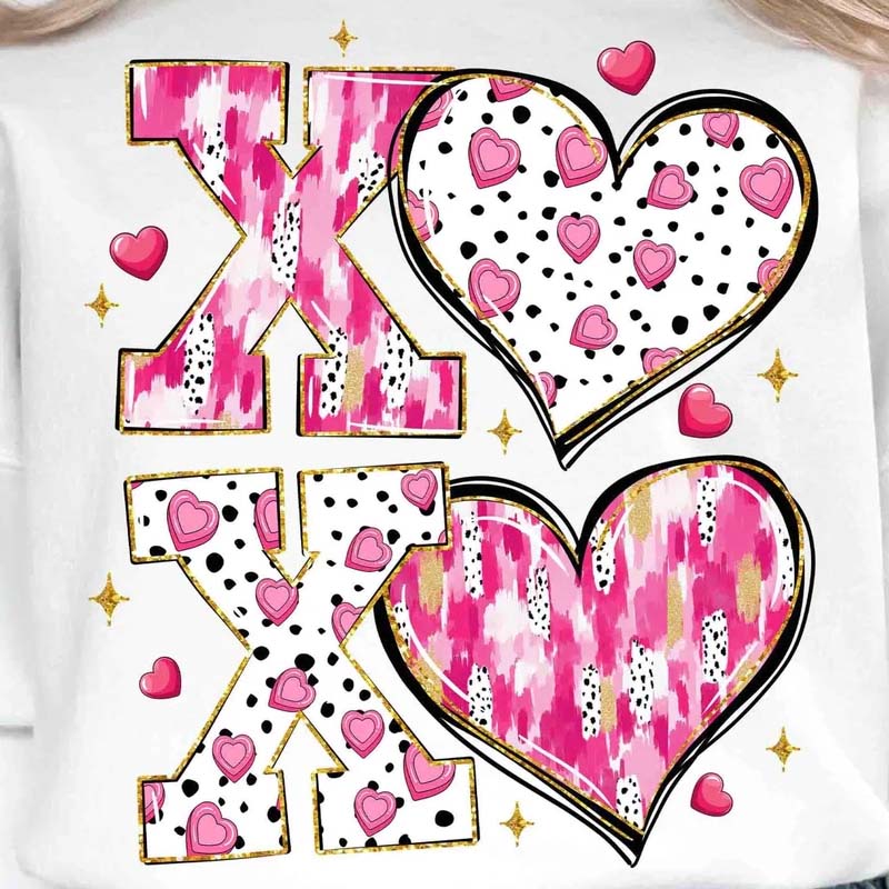 XOXO Brushstrokes and Polka Dots DTF Transfer