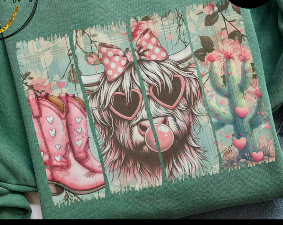 Highland cow, Cactus, Boots Valentines Croquette bow DTF transfer