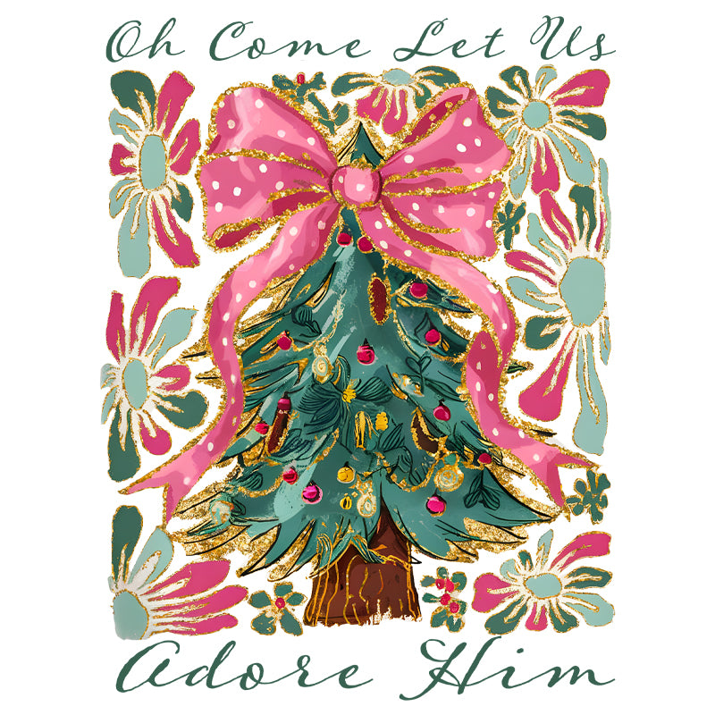Come Let us Adore Him floral Pink Bow DTF Transfer