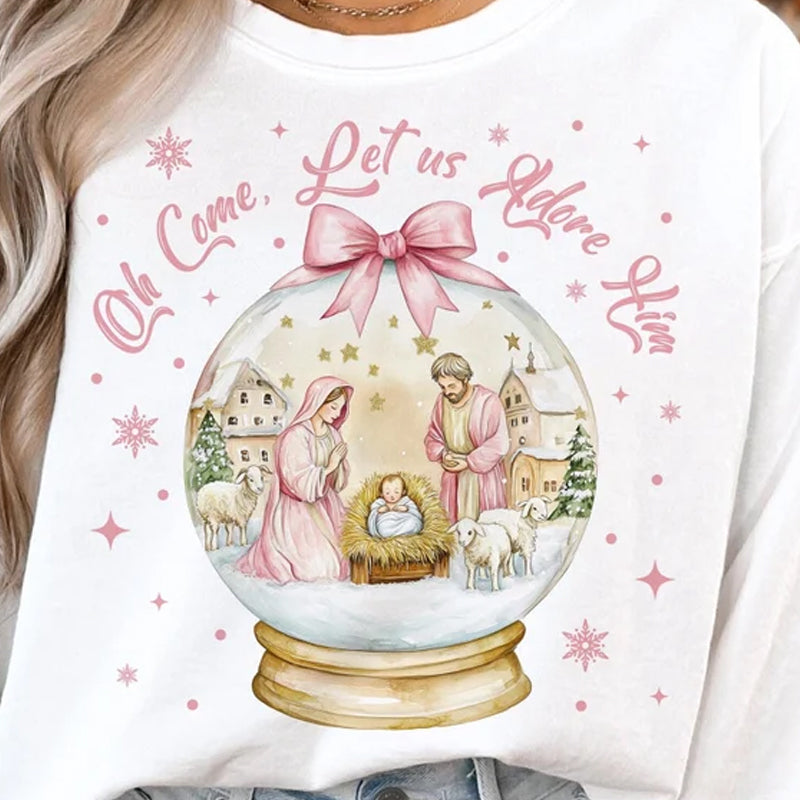 Oh Come Let Us Adore Him Snowglobe DTF Transfer