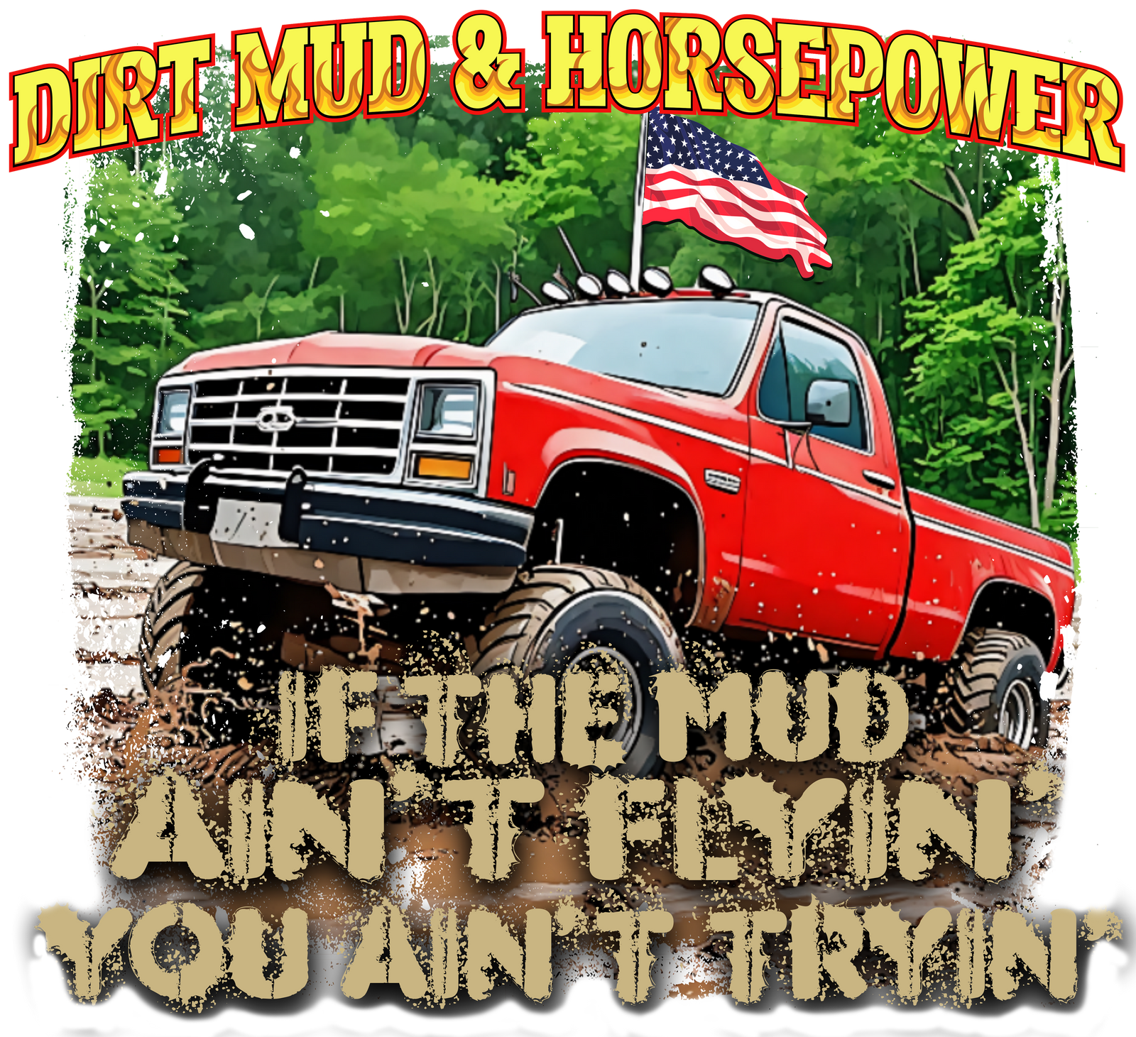 American Mud Flyin' DTF transfer