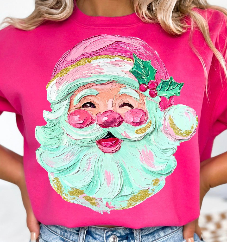 Oil Painted Pink and Mint Green Santa DTF transfer