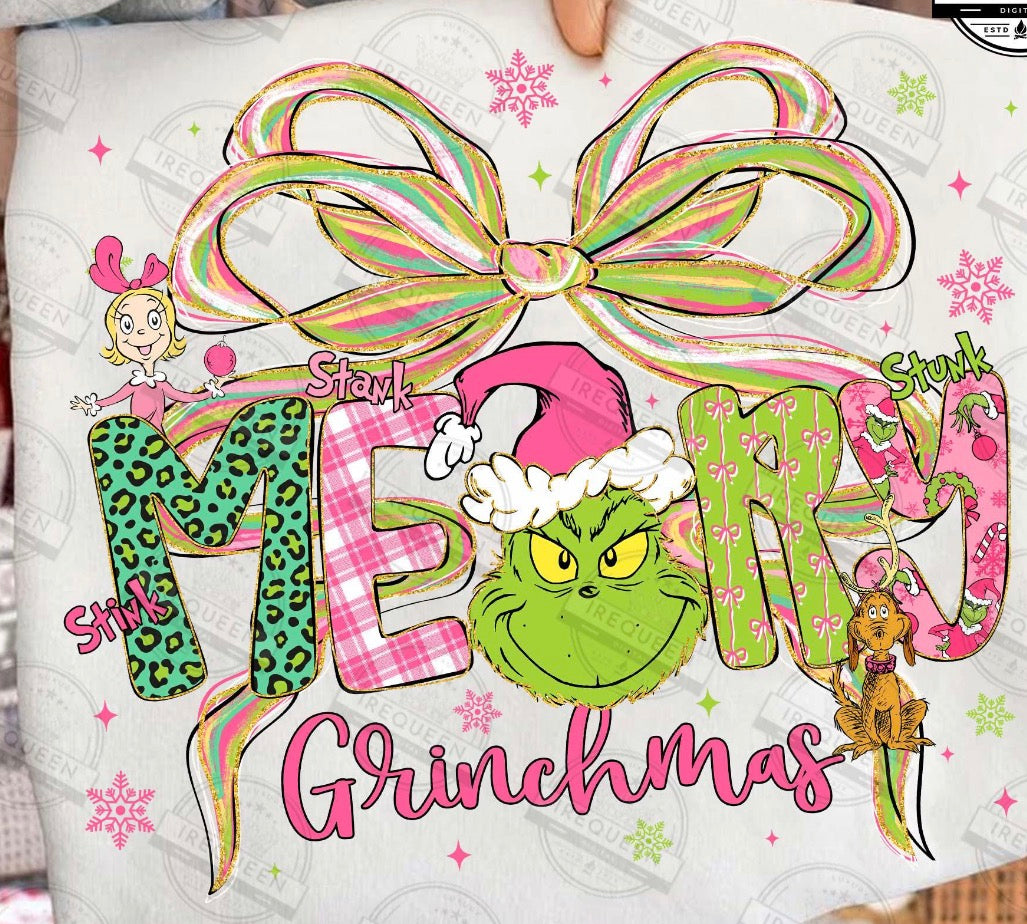 Merry Grinchmas pink and green DTF Transfer