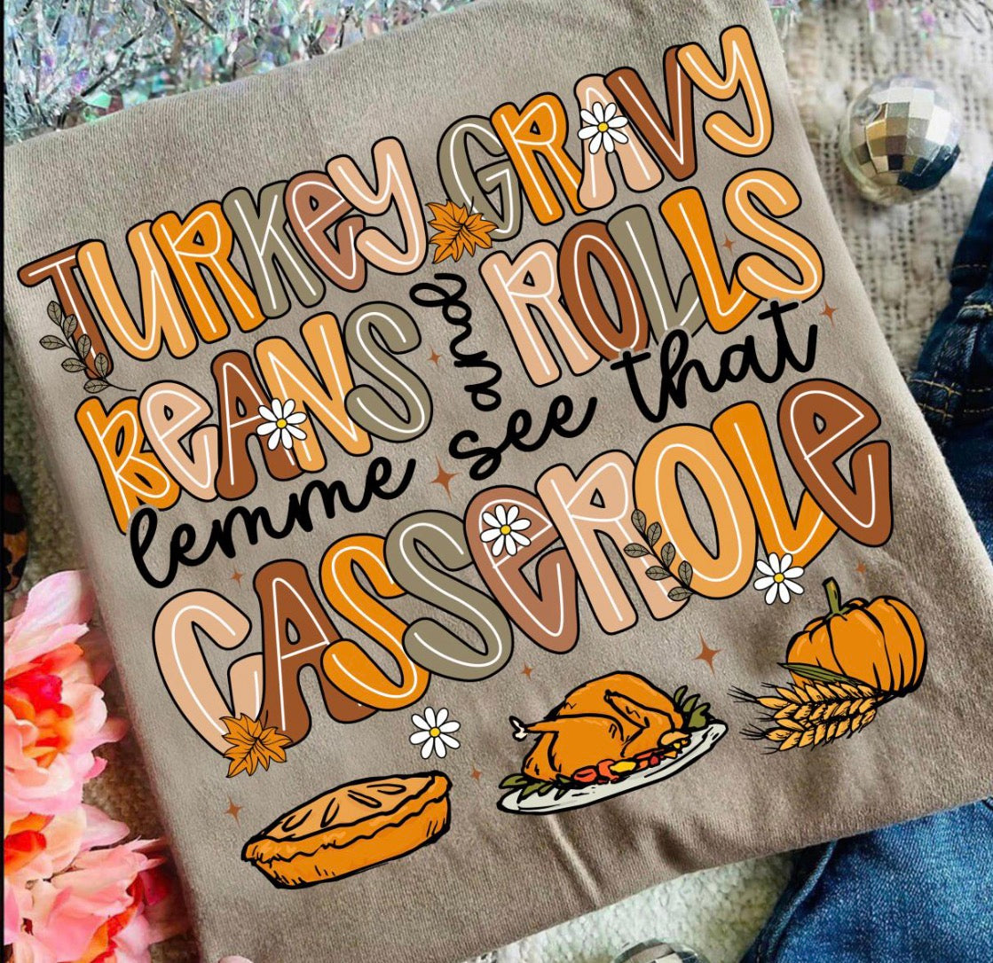 Turkey, gravy, beans and rolls lemme see that Casserole DTF Transfer