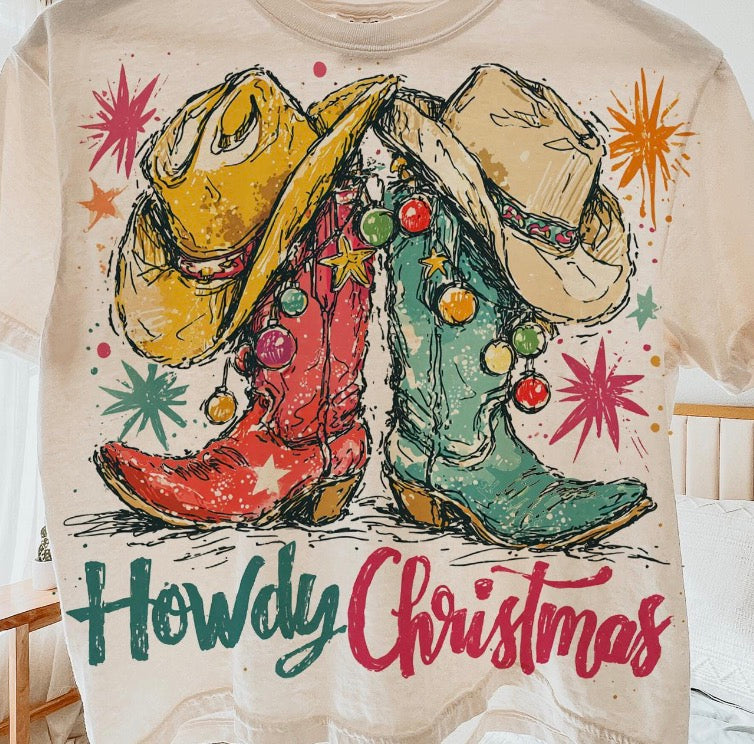 Howdy Christmas Cowboy Boots DTF Transfer