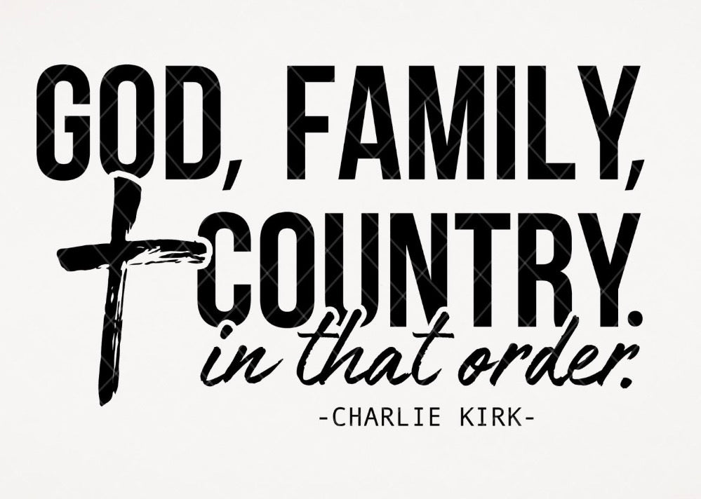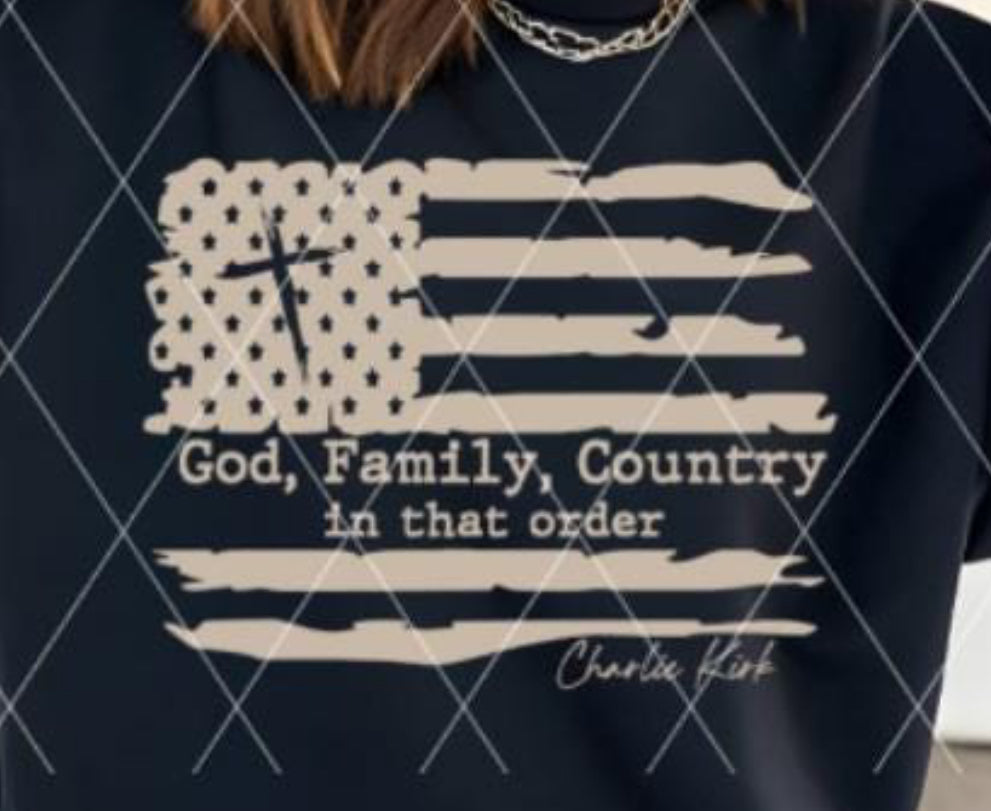 God, Family, Country in that order Charlie Kirk DTF Transfer