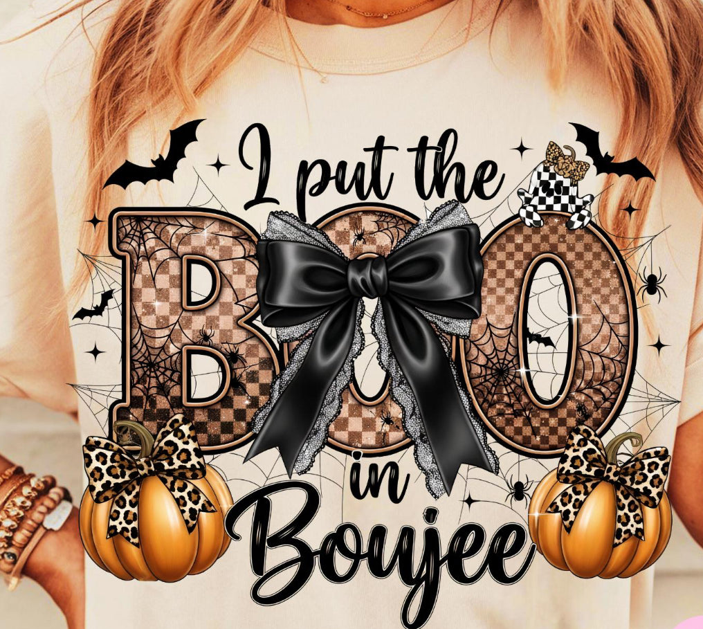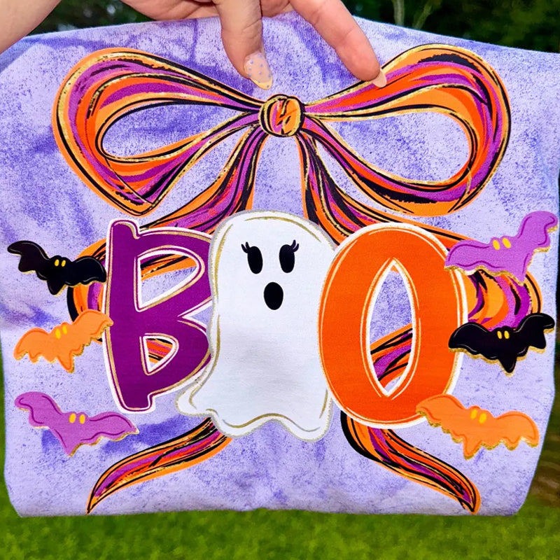 Boo Bow Ghost and Bats Halloween DTF Transfer
